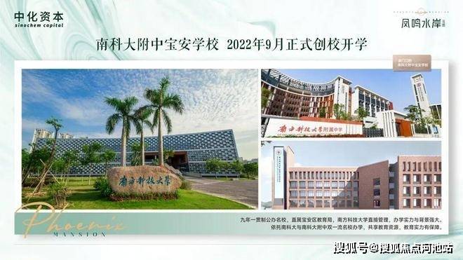 「名校云集 教育黑马升值保证」:项目学区内拥有南科大附中宝安学校、宝安中学实验学校、宝安外国语、新安中学外国语四大名校,其中南科大附中凭借南科大系资源,拥有庞大的院士、金牌教练师资队伍(深圳传统四大都没有这个实力)响当当的名校学区房。