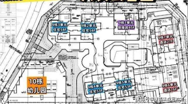 天安云谷里01-03地块,总占地面积约3.45万㎡,总建筑面积约34.5万㎡,计容建筑面积约24.5万㎡,容积率7.11,绿化率40%,共由5栋总高45-54层住宅组成,另外配建2栋总高16-27层酒店,其中9栋1单元保障房45F,9栋2/3单元住宅54F,9栋4/5单元住宅53F,10栋是1所18班幼儿园,配建约1.8万㎡商业。