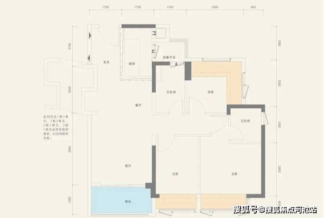 89㎡的3房2厅2卫,设计的是横厅南北通透格局,进门入户玄关,客餐厅5.7米开间,LDKB一体化,四开间朝南,3个卧室分别做到了主卧11.42㎡/次卧7.31㎡/次卧6.93㎡(实测面积,去掉墙体),主卧还带1个设备平台,主卧连接客厅出5.5米长的超大阳台,U型厨房,卫生间三段式分离,赠送面积高达20.09㎡,实际得房率约101%(包含赠送),西南/东南朝向。