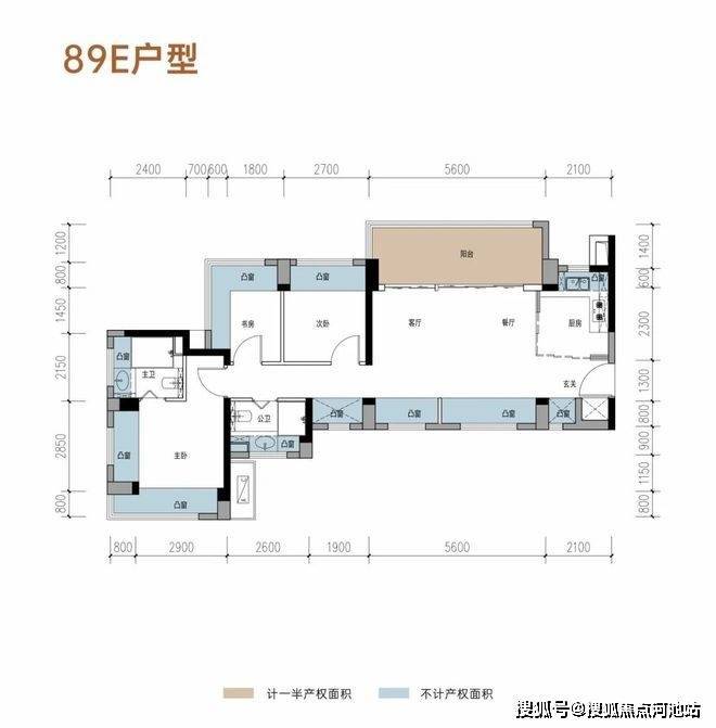 设计的是横厅南北通透格局,客餐厅5.6米开间,得房率约:96.4%,阳台主朝西北或东北向。看规划学校及规划养老院,视野开阔。