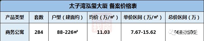 预售单价区间约为7.67-15.62万/㎡;总价区间约为664-3500万元。
