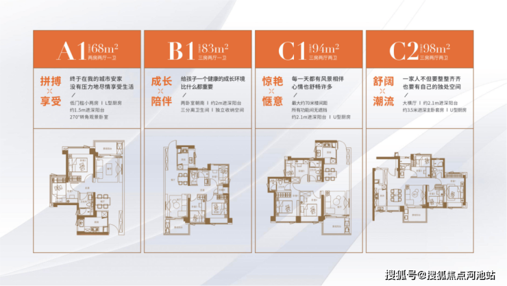 户型设计非常人性化,如三房的阳台都有2米开间,洗手间“三分离”设计,卧室设计270度景观卧室,推窗见山景。而且户型实用紧凑,68平米2房户型即可满足2个年轻人+1个老人+1个小孩居住,可满足刚需10年居住教育需要。