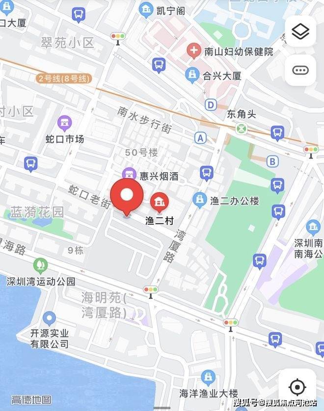 招商渔二村旧改地块在蛇口老街、湾厦路和望海路交汇处。步行220米左右,就能到达最近的2号线东角头地铁站。