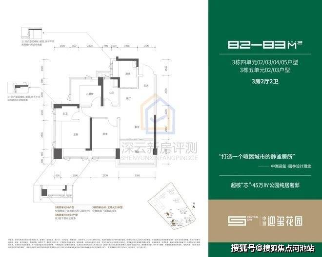 参考价格:82-96㎡三房总价498万起;