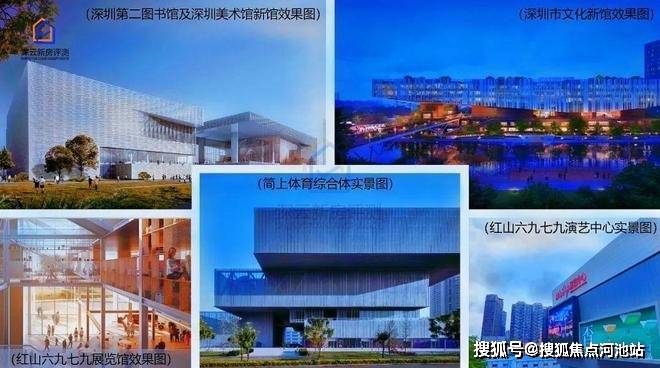 深圳展览馆、深圳市文化新馆 (建设中)、深圳演艺馆(开心麻花红山剧场)、深圳市第二图书馆(2023年建成),深圳市美术馆新馆(2023年建成)、简上体育综合体,项目周边汇聚五馆一体文体配套,尽展都会活力生活。