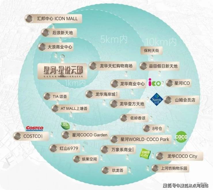 • 约5-10公里 是生活到繁华的距离 近邻龙华星河iCO、壹方天地、红山6979、华南首家COSTCO(预计2023年第四季度开业)、未来龙华海岸城(规划中)、华润万象系商业(约13.4万㎡规划中)等陆续登场,坐拥多个商圈,未来城市“超级商圈”由此迭变,启幕万象丰盈。