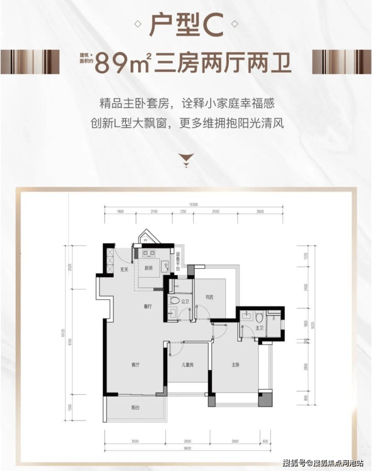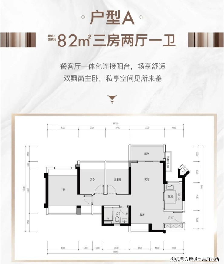 产品面积段:建面约82-108㎡三至四房