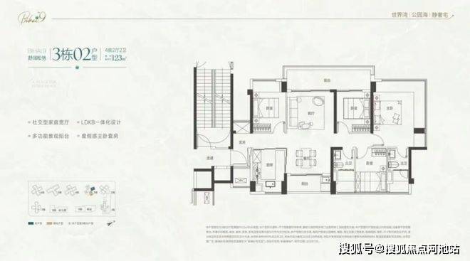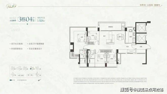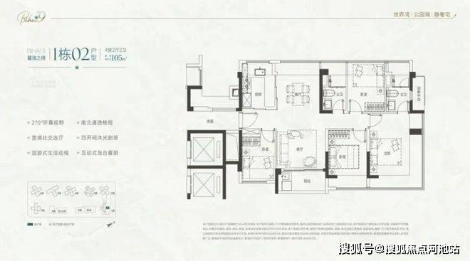 105-122㎡四房:主流改善,2梯4户,西南看海