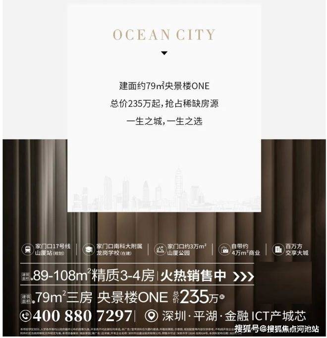 最新消息:深圳龙岗平湖新楼盘——远洋城,首推城启家园有4个单元,共657套房源!面积有65㎡的2房2厅1卫,79-89㎡的3房2厅2卫,108㎡的4房2厅2卫户型,本次开盘折后均价3.16万/㎡,折后单价2.9-3.42万/㎡,总价在230-370万/套,远洋城交房时间是2027年6月30日前带全屋华为智能精装修交房。