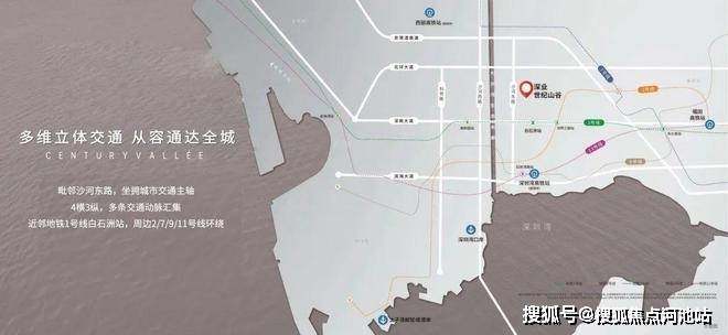 距离地铁1号线白石洲站约500米 步行约7分钟、规划中的20号线白石洲站,规划中的29号线白石洲北站就在楼下,最终以公式为准,五轨四横三纵多枢纽:项目毗邻沙河东路,950米达深南大道;驾车1.5公里进入北环大道,坐拥城市交通主轴,与总部经济圈紧密相连,近邻地铁1号线白石洲站,1站到达高新园,周边五轨环绕,纵横湾区主场,从容通达世界。