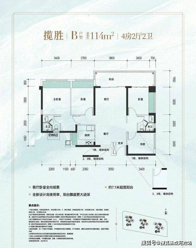 114平双龙抱珠户型,7.1米超大阳台,270°景观面看科学公园一线景观