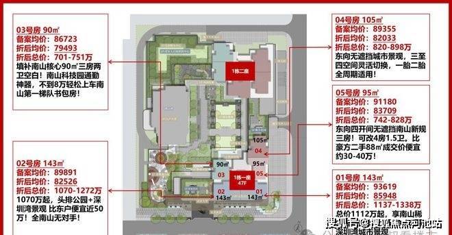 143㎡01东户折后均价约8.59万/㎡、02西户折后均价约8.25万/㎡。