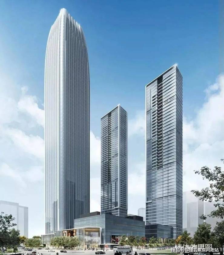 由三栋超高层建筑以及下沉式商业组成,其中写字楼高度约310m,公寓高度约255m,是集超甲级写字楼、公寓、都会商业等业态于一体的湾区综合体。