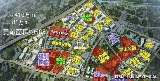 鸿荣源观城总占地面积约68万㎡,其中有40万㎡属于鸿荣源,包含住宅、商业、产业,还有约28万㎡由鸿荣源代建移交政府的公共配套,包含绿化、水系、公园、学校、医院、养老院、文体设施等。