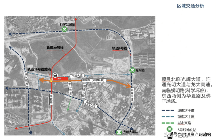 5条地铁轨道即6号线、13号线、18号线、26号线、29号线交织布局。(信息来源:光明区十四五交通规划。)