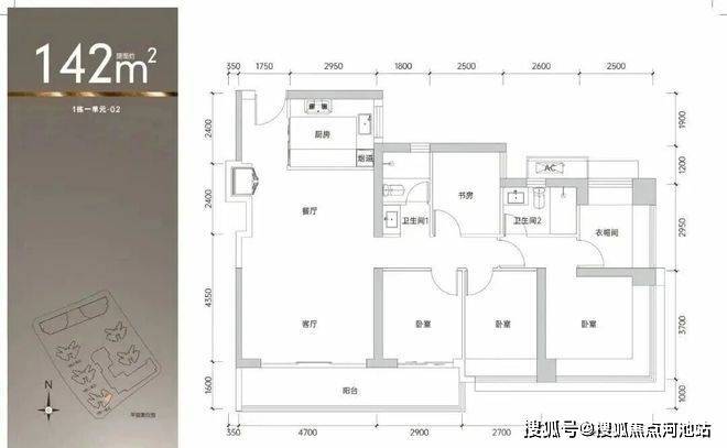 142㎡的4房2厅2卫,1栋1单元02户型,设计的是经典竖厅格局,进门入户玄关,客厅4.7米开间,LDKB一体化,S墙设计预留冰箱卡槽位,四开间朝南,动静分区,4个卧室分别做到了主卧24.03㎡/次卧9.99㎡/次卧8.99㎡/次卧7.6㎡(包含墙体飘窗),U型厨房,公卫三段式分离,得房率约75.4%(不含赠送),客厅连接次卧出12.16㎡的观景大阳台,东南朝向。套内面积107.06㎡+赠送面积14.75㎡=实得121.81㎡,加上赠送后得房率约85.78%。还未推售