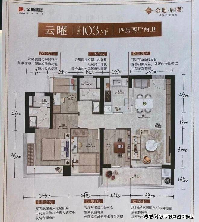 金地启曜的户型设计堪称“空间魔术”,93-130㎡三至四房均做到精装交付,得房率高达90%(含赠送),在新规楼盘中表现亮眼。每个户型都兼顾实用性与舒适度,细节拉满: