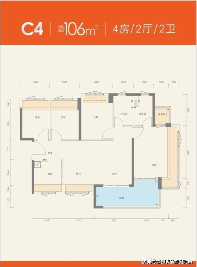 产品面积:建面约76-106㎡三至四房
