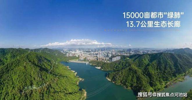 南向,是郁郁葱葱的塘朗山,近1000万平的原生山脉,森林覆盖率达约87%,山高谷深、林茂水长。60%绿化控规,全市第一的天然氧吧,负氧离子含量2万/cm³,是福田中心区的4倍