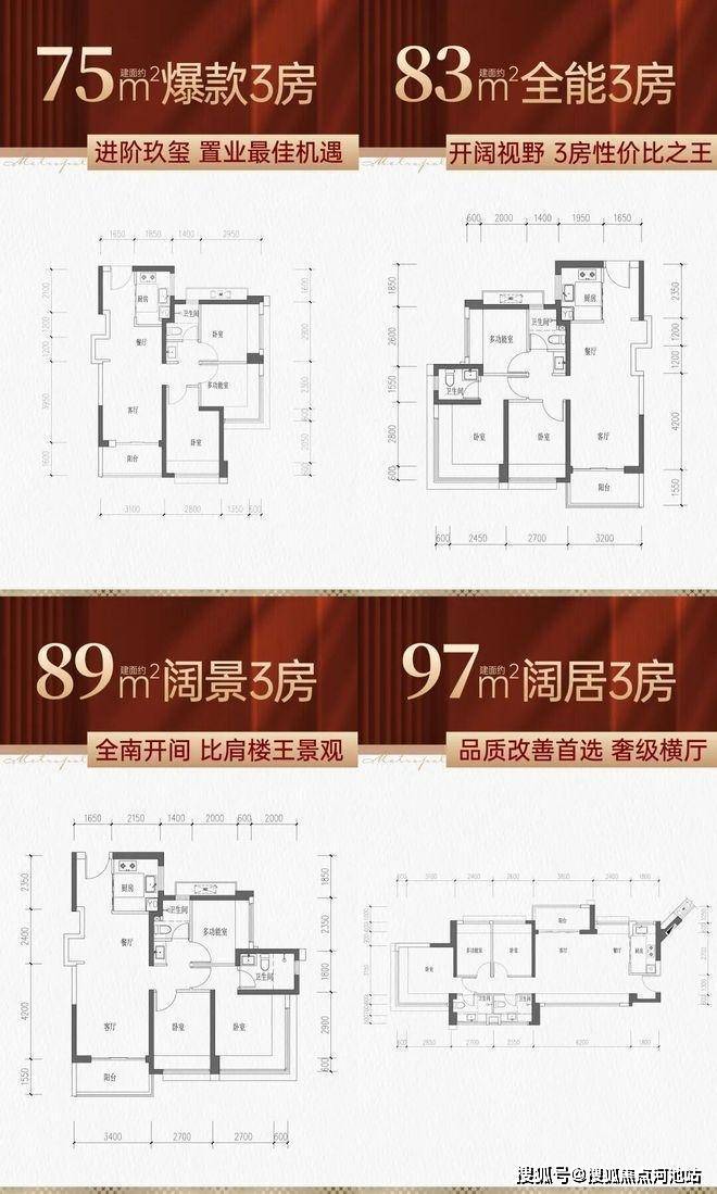 【户型产品】:约75-97㎡全能3房/约110-199㎡臻奢4房