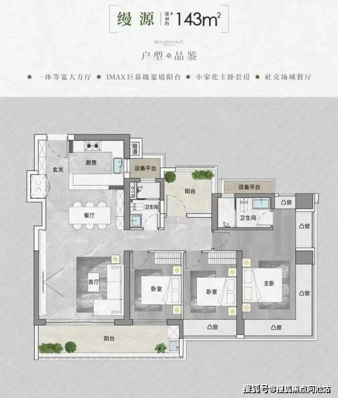 01号房,143㎡4房2卫,单价约:7.9-9.3万,总价约:1137-1338万