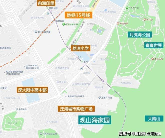 观山海家园,位于深圳市南山区兴海大道东侧、沿山路南侧,就在大南山脚,靠近妈湾片区和赤湾片区,距离5号线荔湾站约650米。