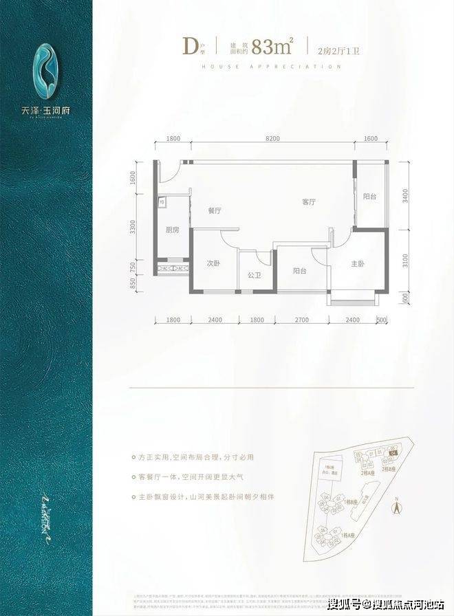 V型塔楼布局,南向阳光户型,约80%高实用率,双阳台,光明罕有绝版户型。建面约80-143㎡河岸美宅,赠送高标准绿建简装,向往的生活在这里触手可及。