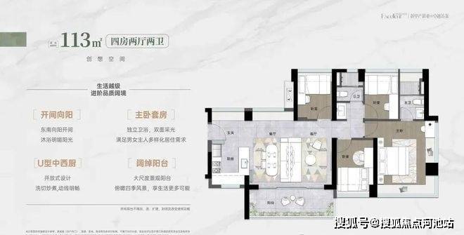 项目在售户型为80-113平3-4房单位,总价约360万起即可买3房!