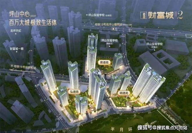 财富城2期所在的区位是整个坪山最核心的地段,汇聚了高铁+14/16号线双地铁+坪山实验学校+坪山中心公园+坪山天虹商场+坪山区政府+坪山体育中心+坪山图书馆,文艺馆等等,所有的市政配套基本都集中在这里,并且财富城2期也是该核心区域内唯一在售的新盘。