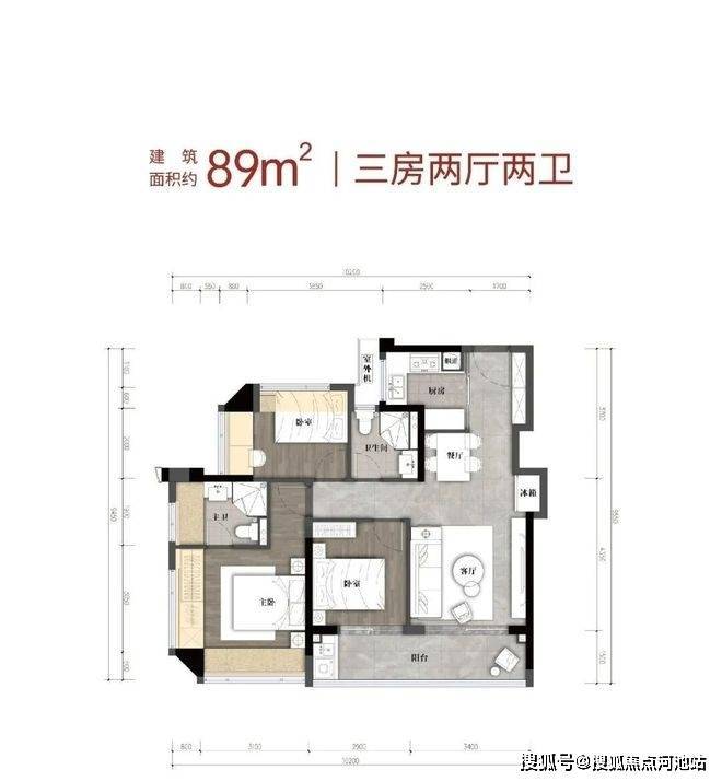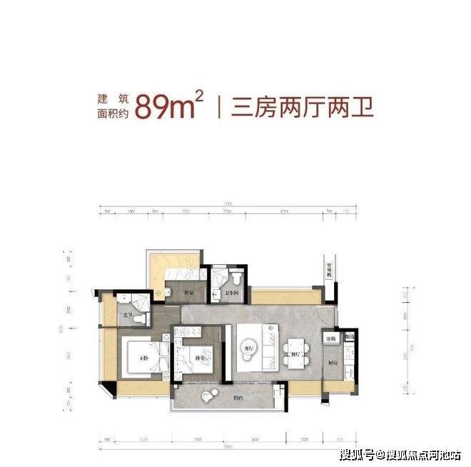 89㎡横厅:总价331-352万,单价3.72-3.96万/㎡;