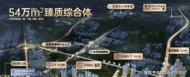 星河盛境3期,位于深圳市龙岗区园山街道,地处大运板块核心区域,毗邻地铁3号线永湖站及14号线坳背站,是双地铁覆盖的TOD综合体项目。项目周边交通网络发达,14号线可1站直达大运枢纽,5站至罗湖、6站至福田,规划中的21号线和33号线将进一步强化与坂田、南山及机场东的快速连接,形成覆盖全城的“五纵四横”路网结构(水官高速、龙岗大道等),便捷通达深圳核心区域。