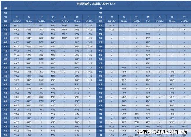 京基·天韵府备案价格表如下