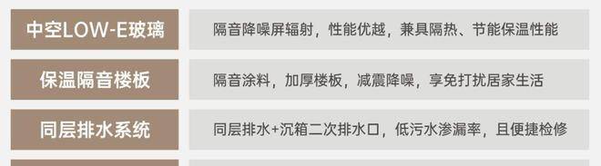 精益求精,高标准打造中空LOW- E玻璃、保温隔音楼板、同层排水系统、6S安防系统等,减少生活困扰,精工品质筑家,致敬美好生活!
