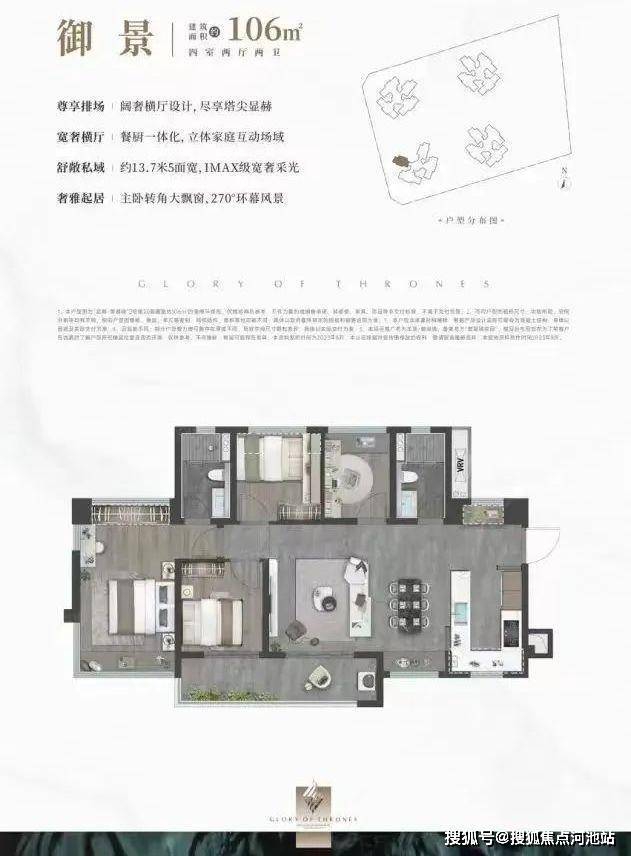 106㎡的4房2卫,折后总价407-410万/套,单价3.82-3.85万/㎡。