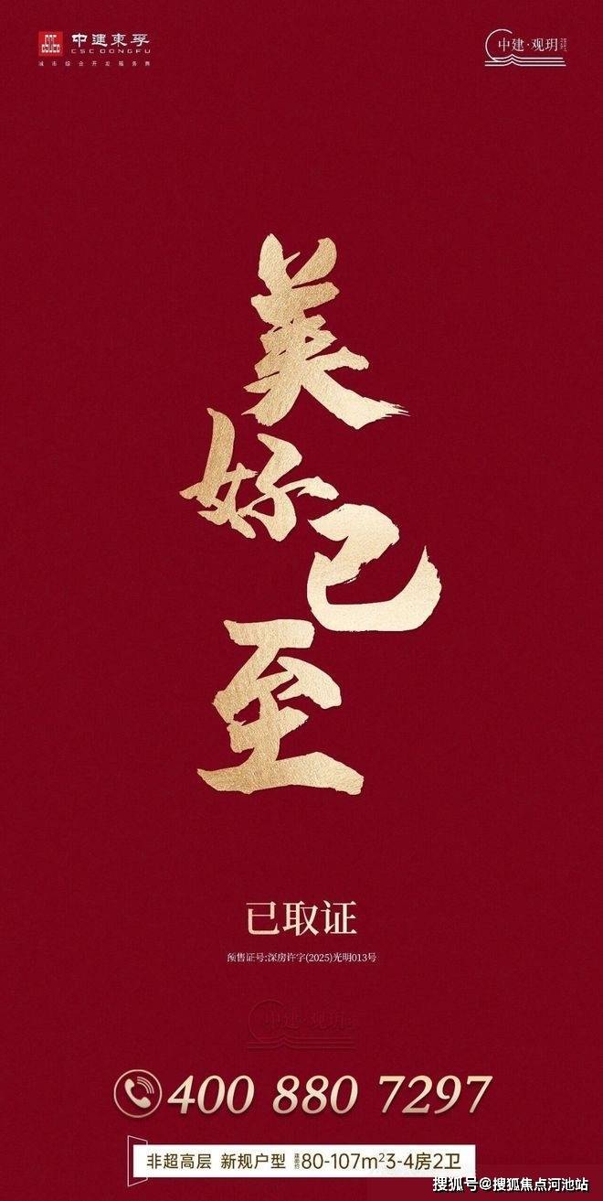 最新消息:深圳光明城新楼盘——中建观玥·名邸于2025年10月24日取证入市,本次加推2栋,共191套房源,面积有80-89m²的3房2卫,107㎡的4房2卫户型,共192套房源,备案均价4.51万/平,备案单价4.17-4.93万/平,3房总价334-422万,4房总价482-522万,合同约定在2027年3月份带精装交房,更多具体详情欢迎咨询开发商电话:4008807297。