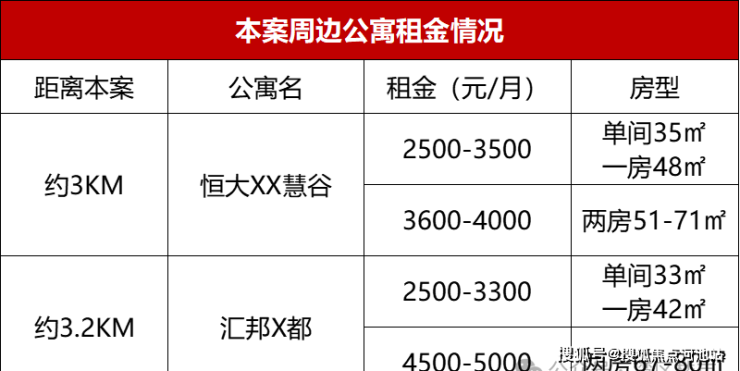 片区少有商务公寓,焕新区域品质生活。本案周边1-2房公寓租金约2500-4000元/月,看得见的租金收益。