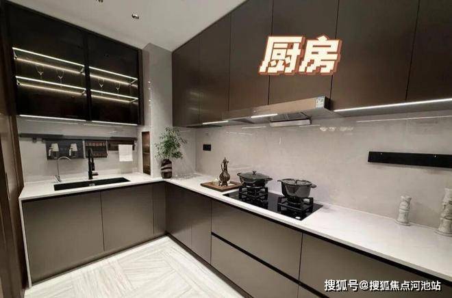 项目的交标还算不错厨房里,交付的是德国美诺(Miele)全套厨电,包括洗碗机、蒸烤箱、嵌入式冰箱(冷藏冷冻分离)、燃气灶和抽油烟机。在建面约255㎡的顶配户型中,甚至还配备了酒柜。