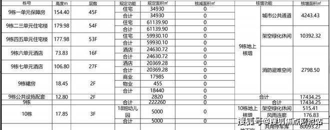 9栋、10栋用地性质为二类居住用地+商业用地,总占面约3.5万㎡,规划建面约22.7万㎡,其中住宅建面约15.6万㎡(含保障性住房3.5万㎡)、商业约1.8万㎡、酒店约4.5万㎡以及幼儿园(18班)等相关配套设施。