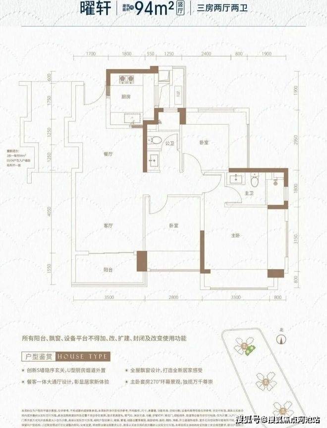94㎡的3房2厅2卫(-1),设计的是经典竖厅格局,进门入户玄关,客厅3.7米开间,LDKB一体化,S墙设计预留冰箱卡槽位,动静分区,三开间朝南,U型厨房,公卫三段式分离,还带1个设备平台,东南朝向。