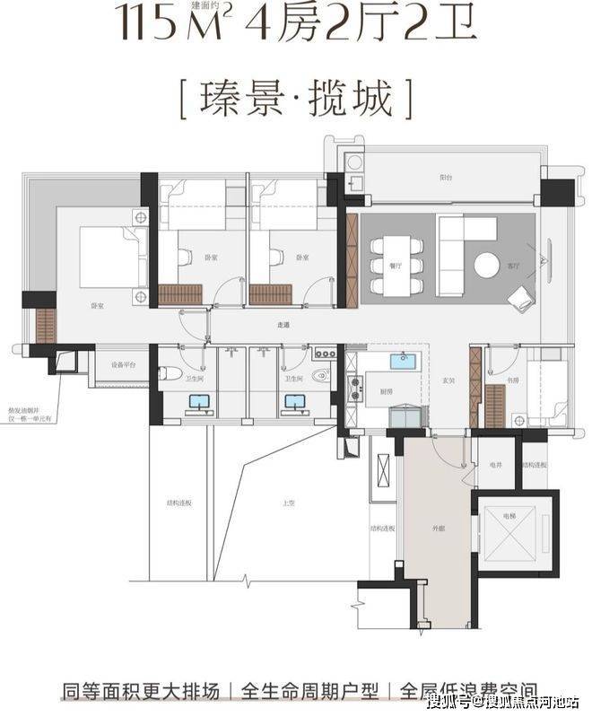 建面约115㎡4房,最低上车门槛
