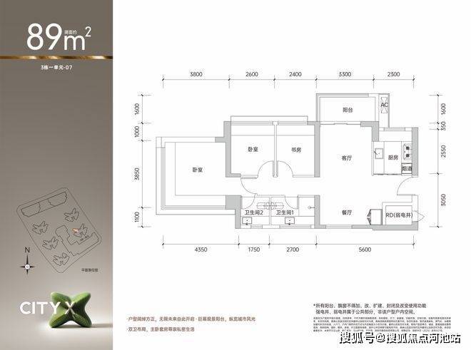 王炸户型 约89㎡3+1房两厅两卫