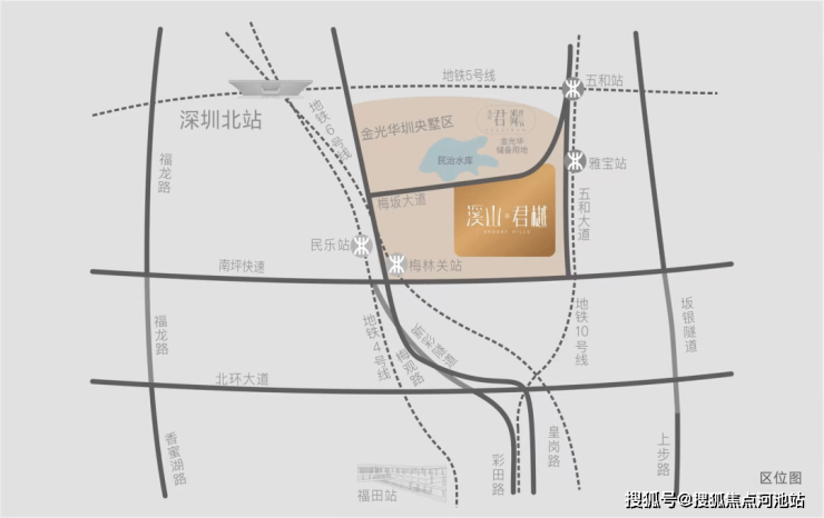 溪山君樾的占位非常特殊,位于福田CBD和龙华CBD的交汇处,也就是深圳的正中心,从地理位置而言,它是龙华盘,但从实质享受的资源配套而言,它也可以算是福田盘。