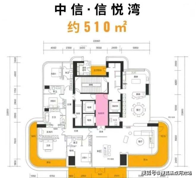 中信信悦湾项目三面环海,拥有永久性无遮挡一线海景,规划5栋超高层住宅,仅407套房源,主打210-510㎡纯大平层。