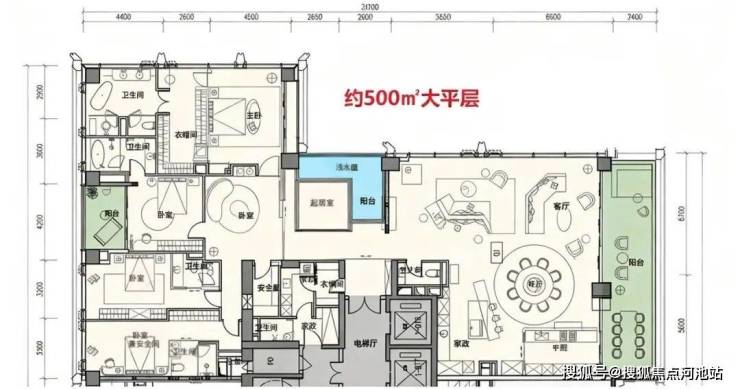 · 超高区58F起(200米以上)是约500-700㎡顶级大平层;