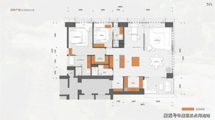 1️⃣209户型客厅约8.8米进深、5.15米开间,阳台开间约4.9米。