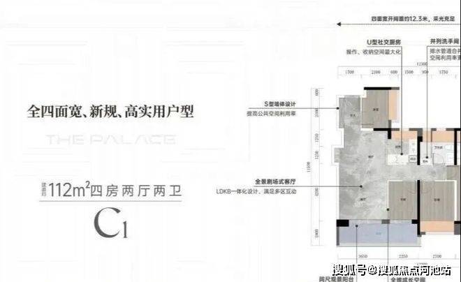 ➢建面约112平方C1户型四房两厅两卫