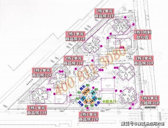 天健瑞云府,由天健集团+深福保+深高新集团3家国企联合打造,总占地面积约3.6万㎡,总建筑面积约22.49万㎡,计容建筑面积约16.46万㎡,容积率4.75,绿化率30%,共由8栋32-36层高住宅组成,分3个地块开发,不过花园都是共享连通在一起的,其中1栋1单元/2栋2单元/3栋1单元住宅33F,1栋2单元/2栋1单元/3栋2单元住宅32F,2栋3单元/2栋4单元住宅36层,4栋是1所9班制幼儿园。