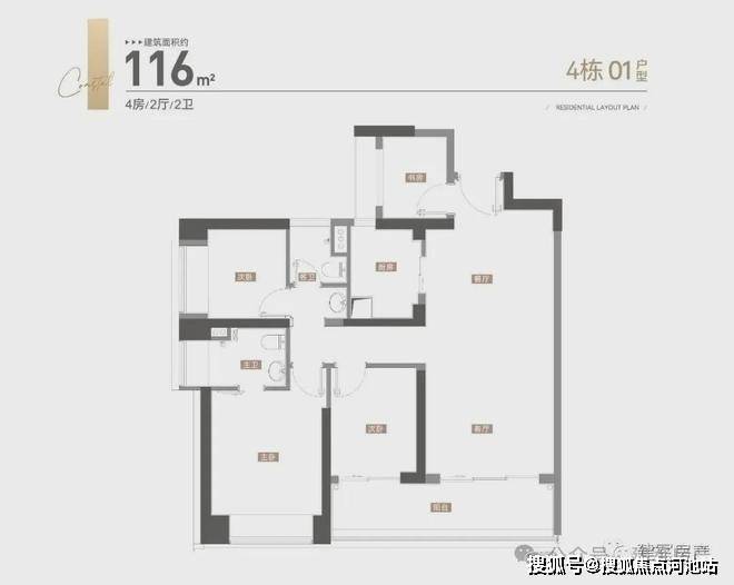 01-02户型116平3房2卫,03、05户型142平4房2卫,04户型120平3房2卫,4梯5户,层高3.1米;