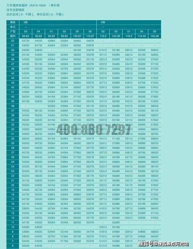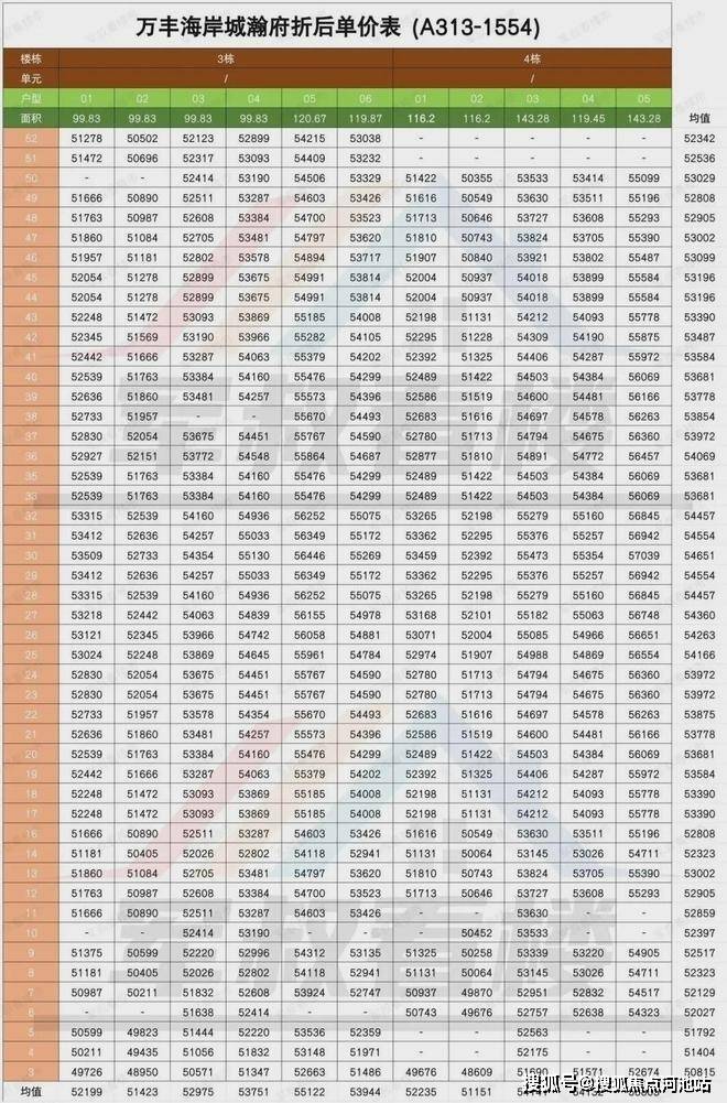 万丰海岸城单价表:
