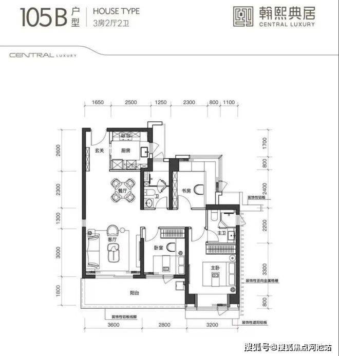 建面约105㎡的3房2厅2卫